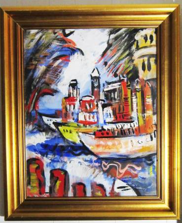 An Antique Expressionist Painting In The Manner of ERNST LUDWIG KIRCHNER, “HARBOR,” gouache on paperboard, 23 in. x 18 1/4 in., German, circa 1920-1930. PROVENANCE: acquired from a private New York State collection of Expressionist paintings, 2005. LIST PRICE: $275.