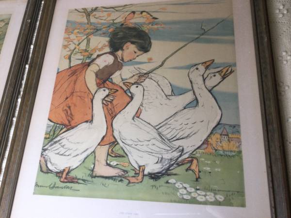 The Goose Girl and On the Seashore, matching frames. 28 x 24 inches each.