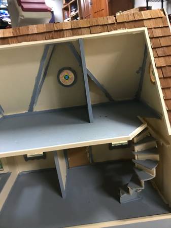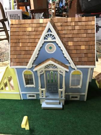 Beautiful wooden dollhouse. Has wonderful details. Includes mailbox and greenhouse. Has been partially painted.
