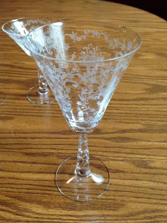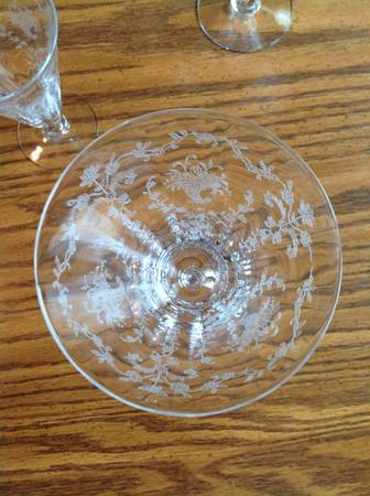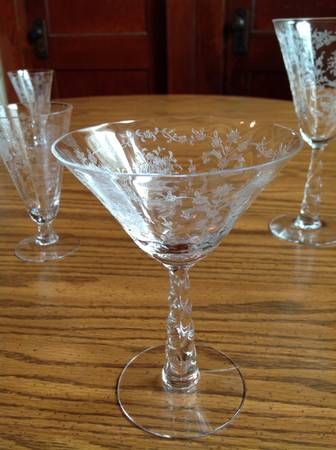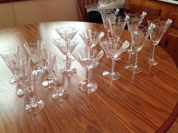 16 etched pieces from the early 1950's. Glass heights are 5", 5 1/2" and 7 3/8".