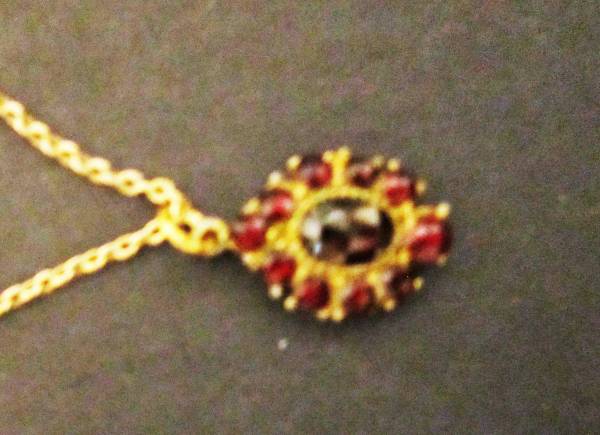 A Garnet Pendant on Chain, Length: 1 1/4 in., Width: 3/4 in. LIST PRICE: $65