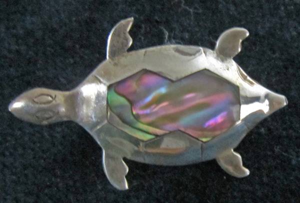 A Vintage Silver and Abalone Turtle Pin, Length: 1 1/2 inches, Width 7/8 inches. LIST PRICE: $40