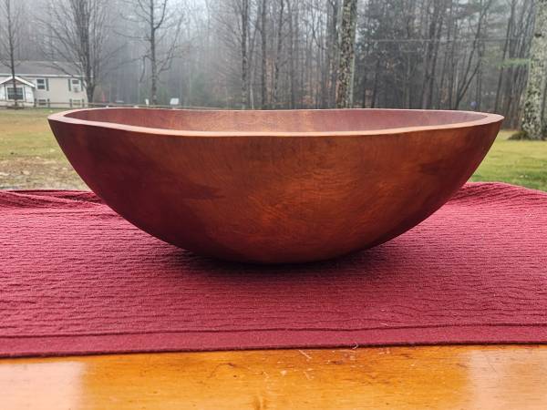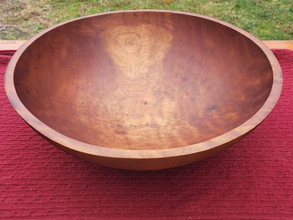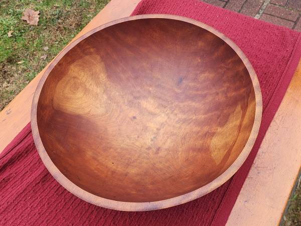 Gorgeous old large solid cherry bowl in great condition - no cracks and beautiful grain pattern. Dimensions: 17" diameter x 5.75" tall. $135 cash, fcfs, no holds.