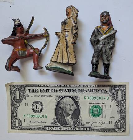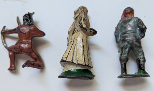3 Vintage Cast Lead Manoil Barclay Toys - Indian - Military Nurse - Warrior Good condition, as seen in the pictures.
