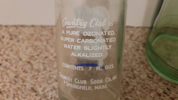 2 VINTAGE COUNTRY CLUB SODA BOTTLES, SPRINGFIELD, MASSACHUSETTS. Nice Condition. Great Local Golf Themed Collectibles. $15 for Both.