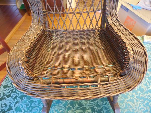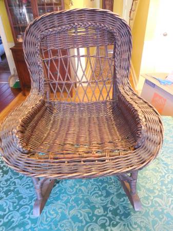Antique Victorian era child's wicker rocking chair (has some wicker damage). $52
