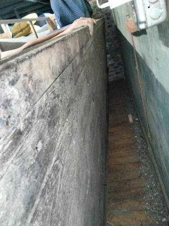 Huge antique work bench from industrial mill building -- over 100 yrs old! 4 ft x 12 ft. Top only -- no legs. Bottom of bench shown in photo. Top looks better and cooler. $150 or best offer. Please...