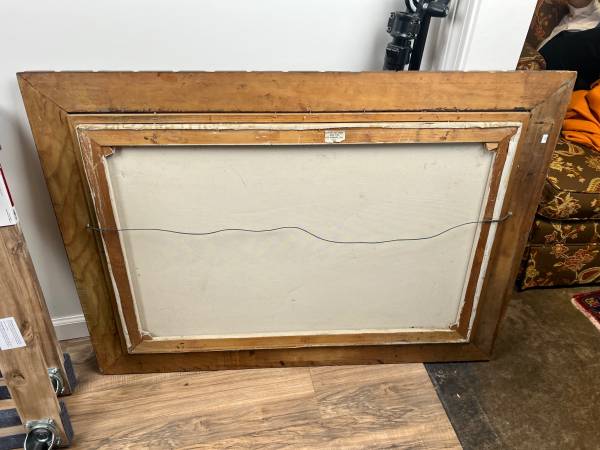 Presented in its original carved wooden frame, the painting remains in nice vintage condition consistent with age and normal use, showing only light surface wear. A beautiful and atmospheric work by a recognized American artist—perfect for a country home, lodge, or traditional interior where a sense of calm and nostalgia is desired. 32h x 44w x 2d