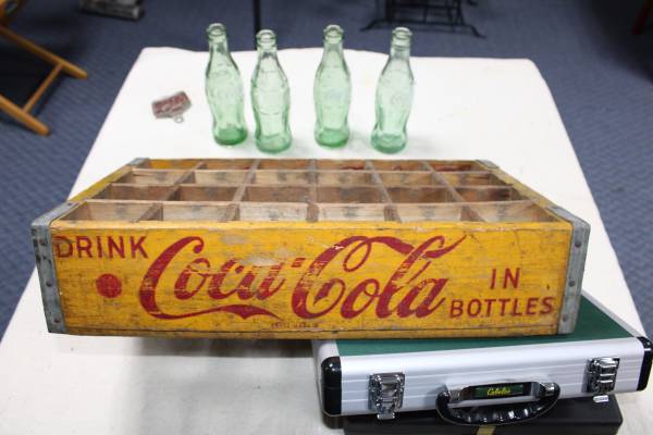 Comes with four vintage Coke bottles from Wichita Falls, Texas, Piqua, Ohio,