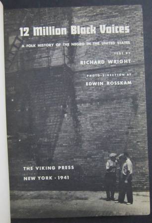 Richard Wright, 12 MILLION BLACK VOICES (New York: Viking Press, 1941), First Edition, Extensively Illustrated with Photographic Images by Dorothea Lange, Jack Delano, Walker Evans, Russell Lee, etc. LIST PRICE: $200.00