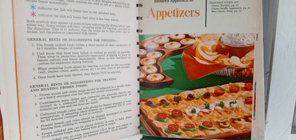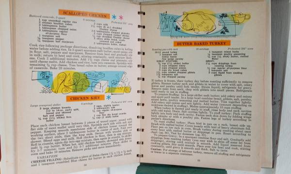 This well preserved spiral bound hard cover cookbook showcasing 20th century advertising and the methodology used to incentivize customers with food product and culinary tool give aways and promotions, features mid century illustrations and colorful food photography.
