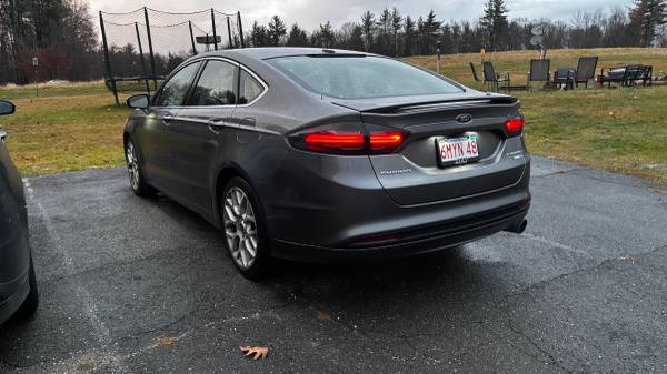 ford fusion 2014 titanium so it is loaded with lots of features heated and cooled seats, premium sony sound system, adaptive cruse, lane keeping assist. it was wrecked in the rear right corner but is fixed up and looks great. The engine and tranny are very solid and it has a cold air intake. Please text or call, four one three, five four five, five seven eight nine with any questions or OBO