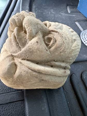 Florence Northampton MA Grotesque gargoyle like figure picking his nose Approximately 3 in. On all sides--High , wide and deep. Probably cement Ready to mount outdoors on a tree or a deck