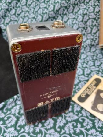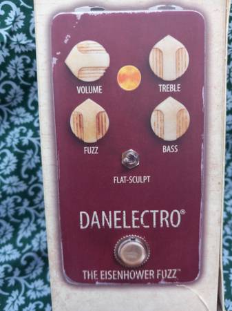 Danelectro "The Eisenhower" octave fuzz, used, $85. Sounds great on either guitar or bass. It has controls for volume, fuzz, treble, and bass, as well as a "flat/sculpt" switch. It can give you a huge volume boost if you want it -- I generally kept the volume knob turned most of the way down to be pretty close to the level of my un-effected signal. The fuzz knob gives you a wide range of gain level and texture to play around with, and I love it when a pedal has independent treble and bass controls rather than a single tone knob. The mini toggle switch for "flat" and "sculpt" settings controls the midrange frequencies of your sound.