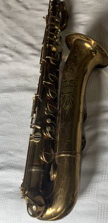 Selmer Bundy baritone sax. Probably circa 1940-1950s. Has nice tone when i played it last a couple years ago. Needs a tune up. Comes with yamaha mouthpiece, body harness and stand and case (which is...