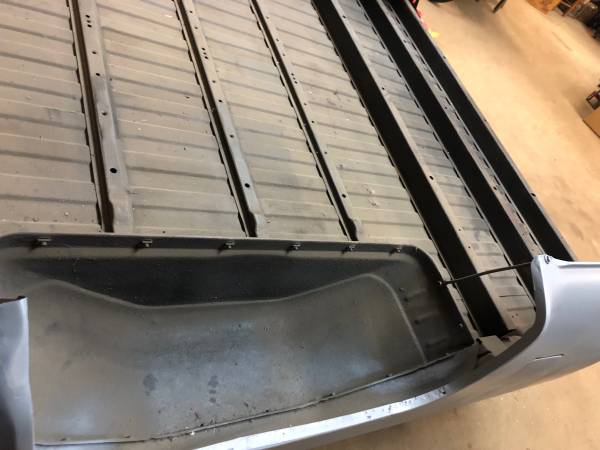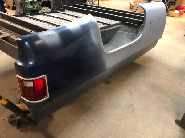 Very nice southern truck bed 8 ‘ Chevy square body 1973 and up all underside cleaned and bed liner coated , no rot on underneath . Small rust behind dr side wheel opening . Repair panel on left of side behind left wheel opening . Needs finishing / paint but super soldi start point