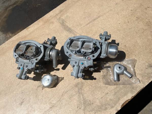 I bought these carbs about 20 plus years ago for a project that took a different direction…They were both remand rebuilds to factory by Holley…check box label for part number…never mounted or had fuel in them…Asking 100.00 for the pair…or you can make an offer in person. Send email for contact and ((( include your phone number )))...I delete inquiries with no contact number…selling as a pair only…I might consider shipping…Buyer pays for shipping…