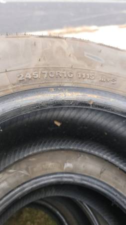 Set of brand new tires. They have less than 1000 miles on them. Stored with a tarp over them since November 1st. I purchased them new and found out my frame was beyond repair and not safe to drive. They were on the truck parked for about a month and I took them off to sell.