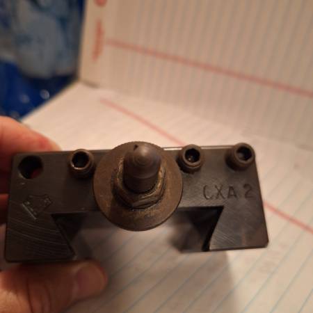 I'm selling a Aloris lathe tool post holder series CXA-2 used for turning, boring ,and facing on a 13" to 18" lathe swings. The dimension of the holder is 2 1/8" OAH X 3 1/2 " OAL interested call