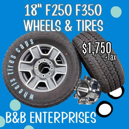 18” Ford Super Duty F250 F350 Rims and Bridgestone Tires New take off rims and tires with less than 50 miles on them.
